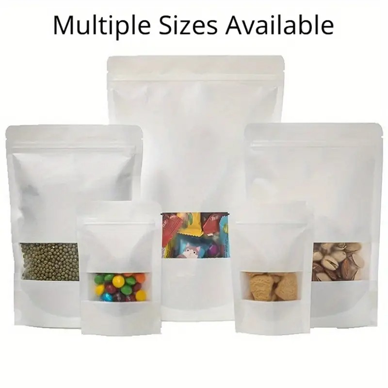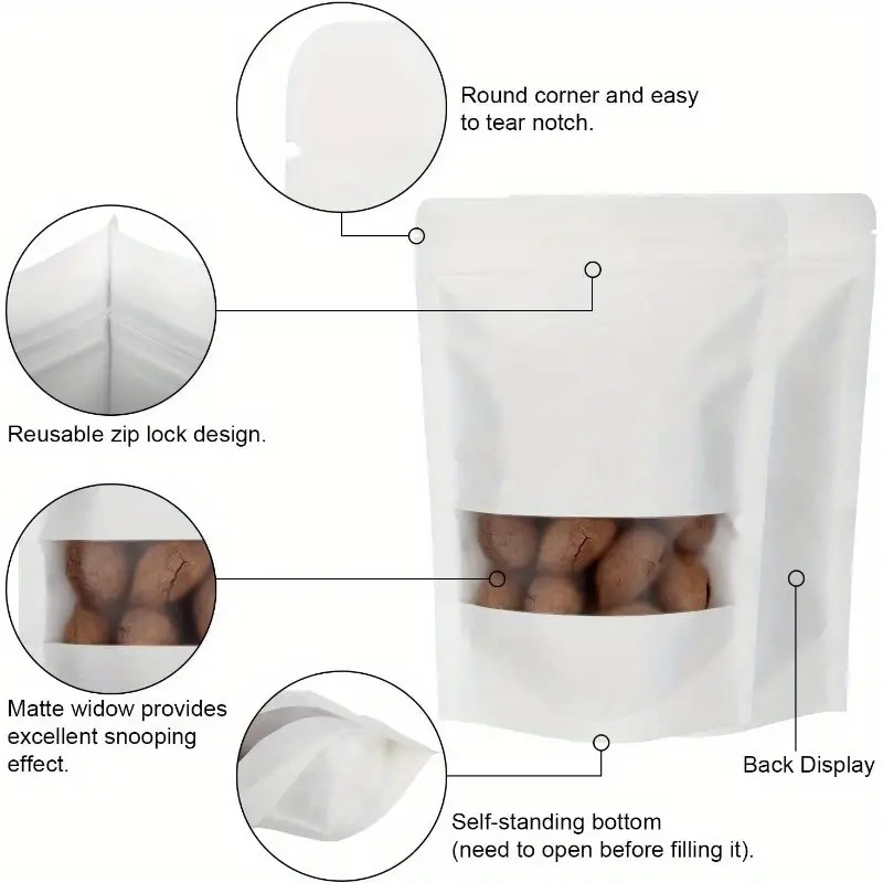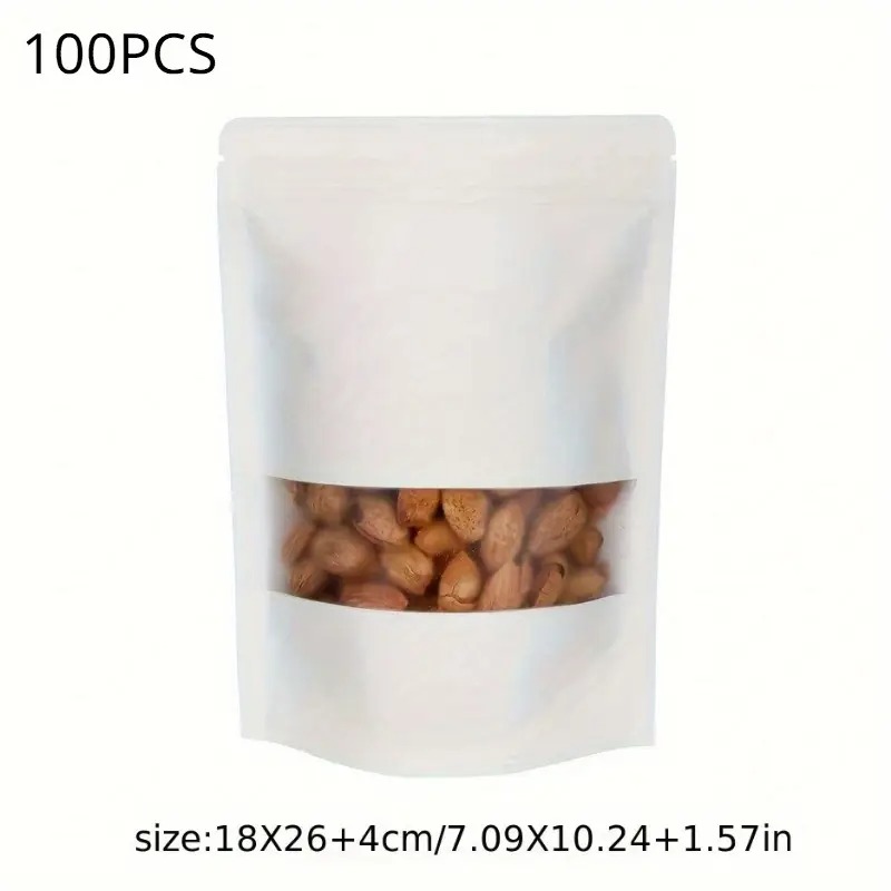 avec fermeture éclair, sachets de stockage, blanc, scellé, debout, thé kg, bonbons, fruits secs, refermable, piste, 100 pièces